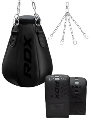 3u1 Set – Maize Aperkat Vreća + Lanac + Rukavice, donosi vrhunsku Maize Aperkat vreću sa unaprijeđenim karakteristikama za poboljšanje aperkata, slipova i pokreta glave. Oblika kukuruza (Maize), dizajnirana je za intenzivan trening koji podržava napredno kretanje glave i kombinovane vježbe. Robusna sintetička koža je otporna na kidanje, dok Zippex™ zatvarač omogućava praktično punjenje. Dolazi prethodno napunjena.