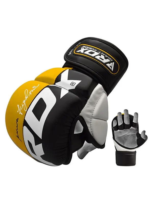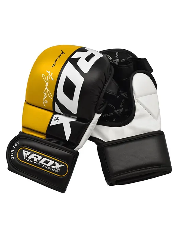 RDX T6 Rukavice za MMA Grappling su profeisonalne rukavice odobrene od strane Švedske MMA federacije (SMMAF). Dizajnirane su da vam pruže udobnost, zaštitu i kontrolu u svakoj borbi. Ručno izrađene od Maya Hide kože, odolijevaju habanju i oštećenjima. Odlikuje ih troslojna zaštita od udaraca, izvanredan hvat i prozračnost, kao i jedinstven dizajn dlana koji omogućuje vrhunsku tehniku udarca i maksimalnu zaštitu. RDX T6 Rukavice su premium izbor za MMA borce.